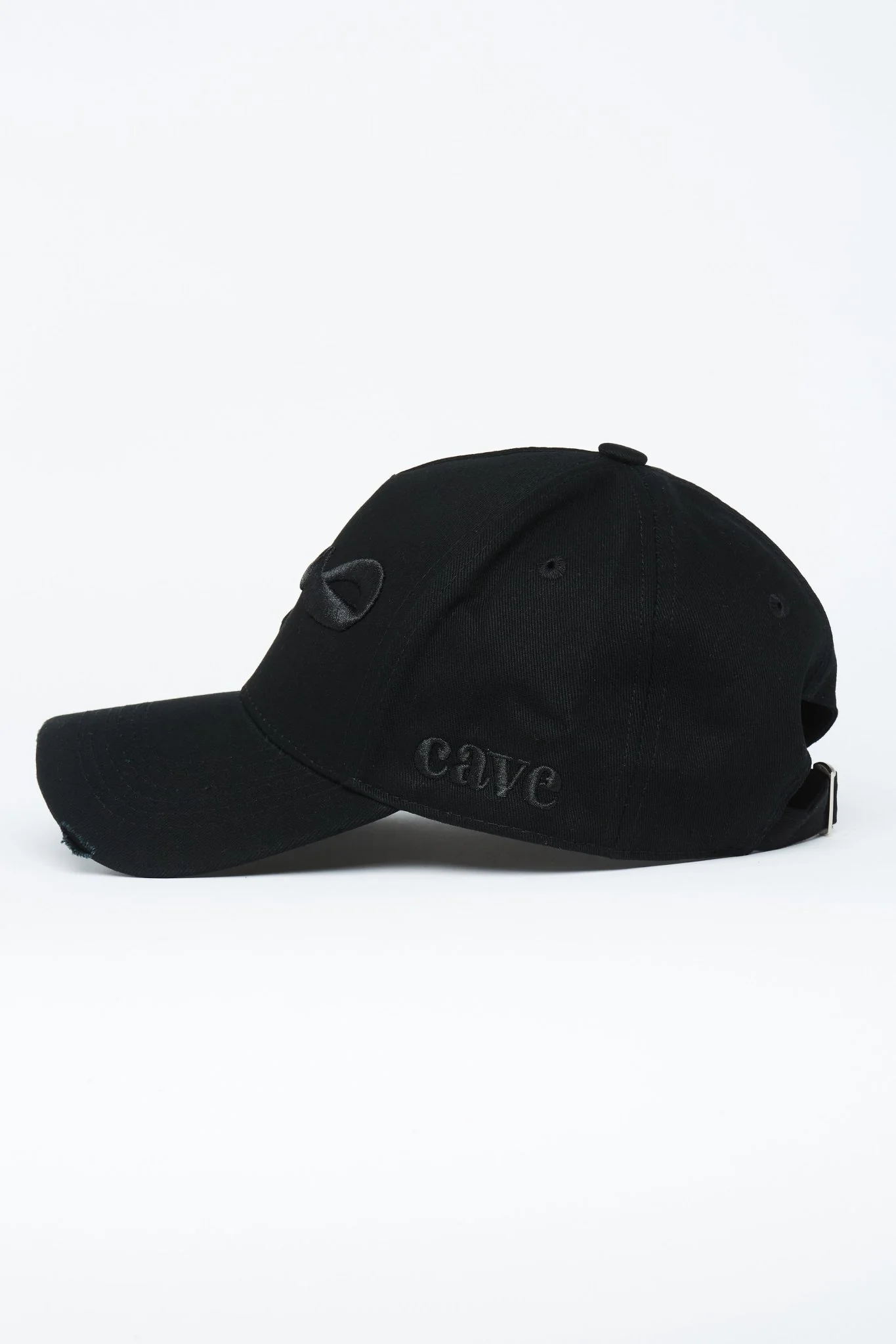 A black distressed baseball cap in cotton, highlighted with 3D embroidery on the front with the popular Arabic text Sabr meaning patience.