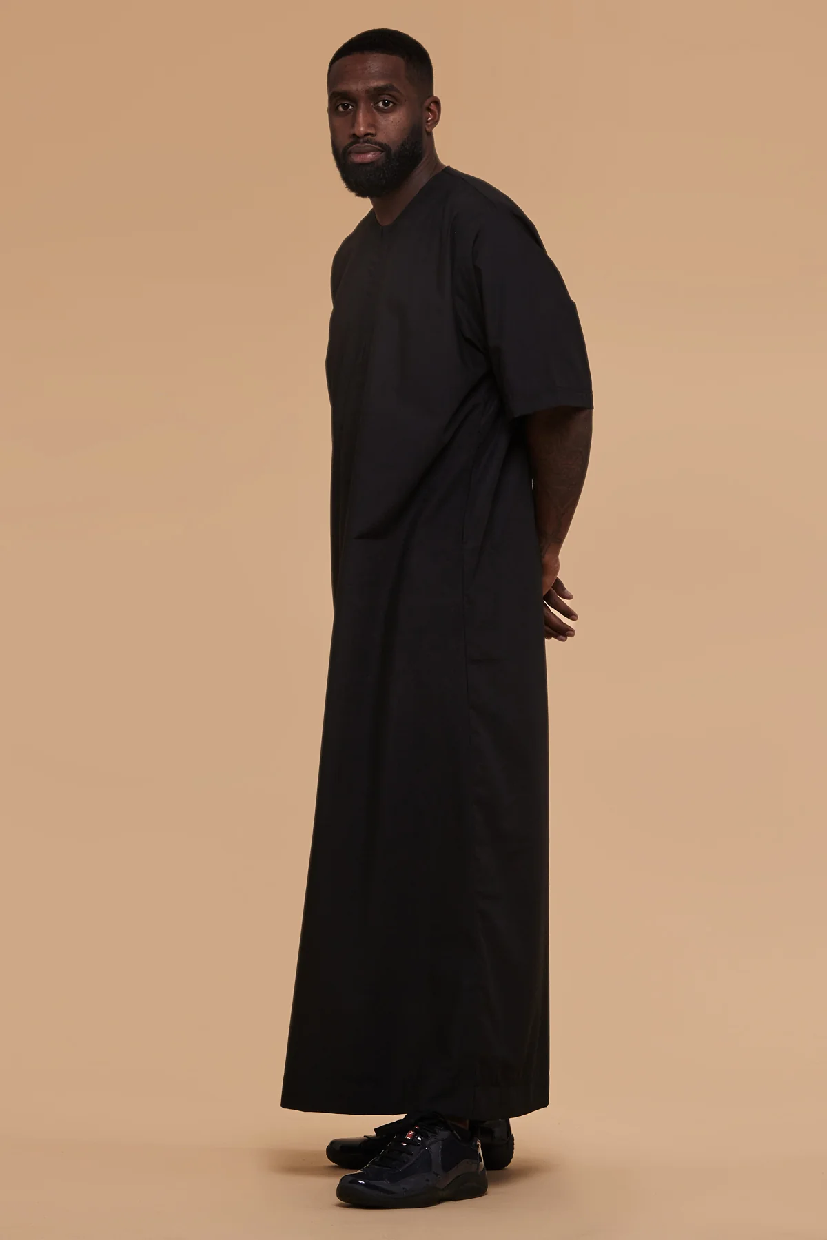 Jet Black Short Sleeve Moroccan Thobe